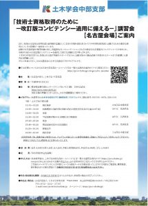 土木学会中部支部では、技術士を目指す皆様をサポートするため、出願対策から筆記試験で重視されるテーマまでを網羅した講習会を開催します。